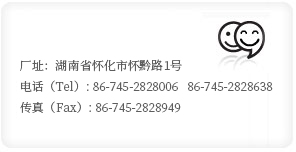 廠址:湖南省懷化市懷黔路1號 Address: No.1 Huaiqian Road Huaihua ,Hunan Province China